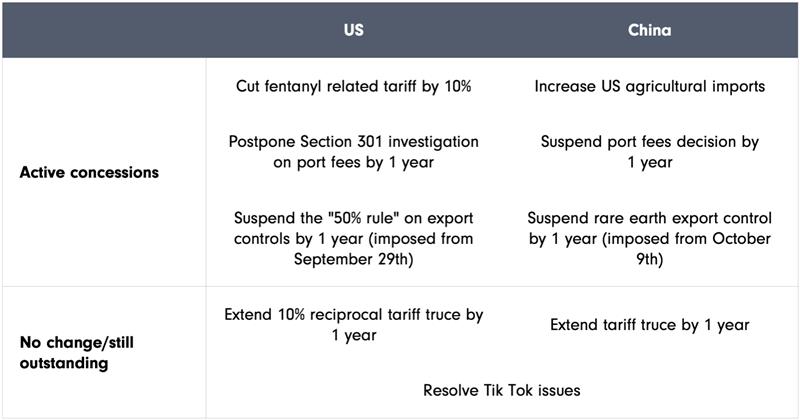 US President Donald Trump and Chinese President Xi Jinping concluded their long-awaited meeting in Busan this week, resulting in a positive outcome with headline wins on both sides. The talks produced several rollbacks on major curbs including tariffs, port fees, export controls, and sanctions.